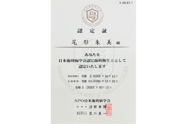 インプラント認定衛生士とは、専門分野において高度な業務実績の知識・技能を有すると認められた衛生士です。